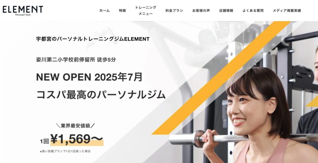 出典:パーソナルジムELEMENT VERUS宇都宮店 公式サイト
